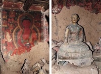 Wall painting of Amitayus, left, and sculpture of a master, right. Images Courtesy of Prof. Luo Wenhua