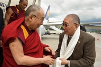Dagyab Rinpoche welcoming His Holiness the Dalai Lama on his arrival at the airport in Frankfurt, Germany on May 13, 2014. Photo/Manuel Bauer
