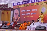 Smiling at the Buddhist monks belonging to different traditions seated with him, His Holiness explained that even within Buddhism there are different views. He said we might ask why what the Buddha taught at one time or in one place seems to contradict what he taught at another time or place.