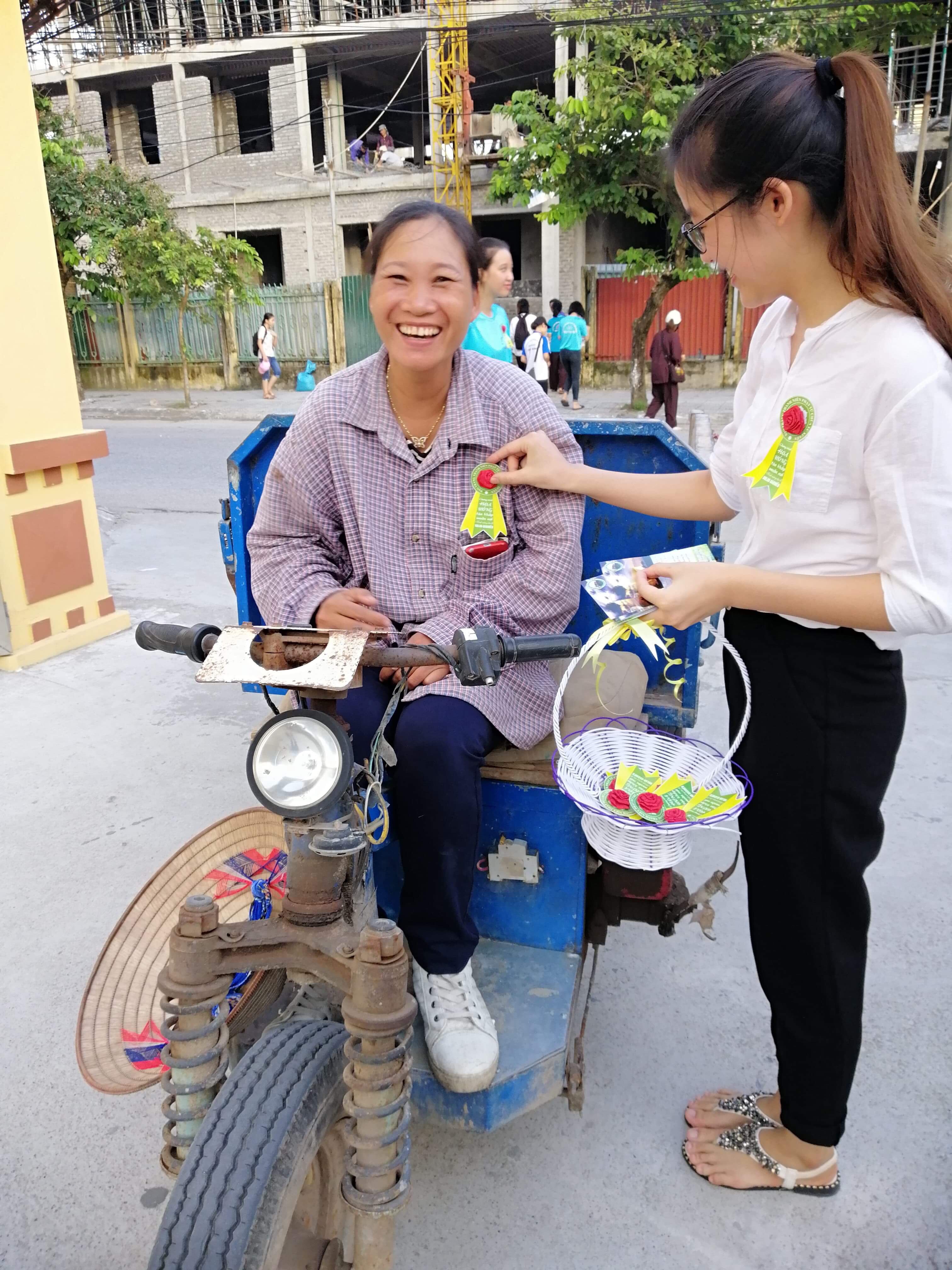 Gần 1000 hoa hồng đã được xuống các đường phố, bệnh viện, công viên, chợ,… được các bạn trẻ cài lên ngực tất cả những hữu duyên, với hoa trắng dành cho người đã không còn ba mẹ, hoa màu đỏ cho những ai may mắn vẫn còn hai đấng sinh thành.