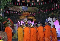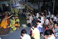 Chư Tăng rải hoa và nước chúc phúc cho Phật tử