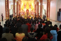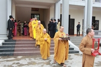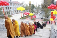 Sáng ngày 19/02/2016 (nhằm ngày 12/Giêng/Bính Thân), tại chùa Trúc Lâm Thiên Trường (P.Lộc Vượng, TP.Nam Định) tổ chức lễ hằng thuận cho đôi bạn trẻ: Nguyễn Trọng Nghĩa (pháp danh Phúc Đức) và Đoàn Khánh Linh (pháp danh Diệu Liên). Buổi lễ có sự chứng minh của chư tôn đức HĐTS: HT.Thích Bảo Nghiêm, HT.Thích Quảng Tùng, HT.Thích Quảng Hà, Đồng Phó tịch HĐTS; TT.Thanh Phong, Trưởng ban Kinh tế - Tài chính; TT.Thích Thanh Định, ĐĐ.Thích Thanh Đường, UV HĐTS TƯGH cùng chư tôn đức BTS PG tỉnh Nam Định; đông đảo họ hàng, bạn bè hai bên. Trước sự cầu nguyện gia hộ của quý thầy và toàn thể đạo tràng, hai đôi bạn trẻ đã kết duyên vợ chồng. Chúc tân lang tân nương “Sắt cầm hòa hợp – Loan phụng sum vầy – Bách niên giai lão”.