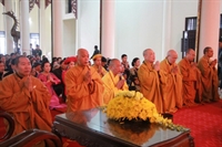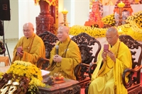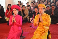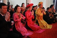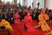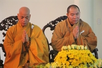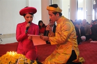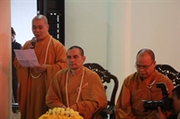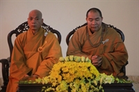 Tiếp đó, đôi bạn đã đối trước Tam Bảo đọc lời thệ nguyện yêu thương nhau trọn đời và hộ trì chính pháp; đảnh lễ công ơn sinh thành, dưỡng dục của song thân; đảnh lễ tôn trọng sự bình đẳng của nhau. Sau đó, đích thân Hòa thượng Trưởng ban Hoằng pháp TƯ trao nhẫn và trao quà cưới cho hai bạn. Trong niềm hoan hỷ của buổi lễ, Hòa thượng Thích Bảo Nghiêm đã khuyến tấn tân lang, tân nương phải sống trọn vẹn bổn phận làm vợ và làm chồng, làm dâu hiền, rể thảo cùng xây dựng hạnh phúc gia đình.
