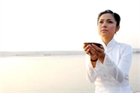 Việt Trinh trong một cảnh quay trên sông Hằng