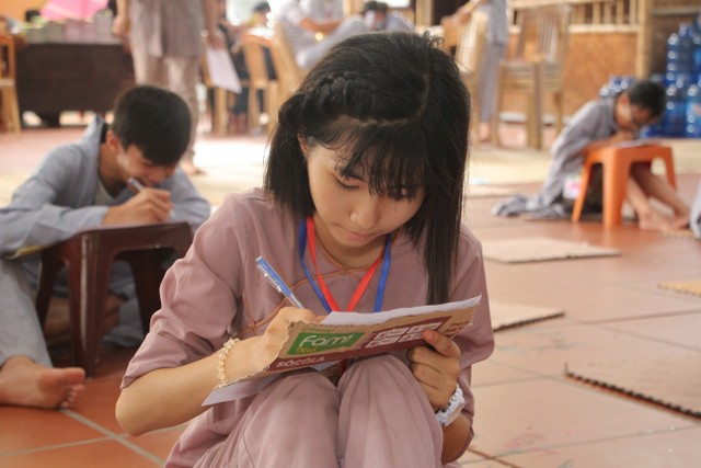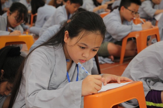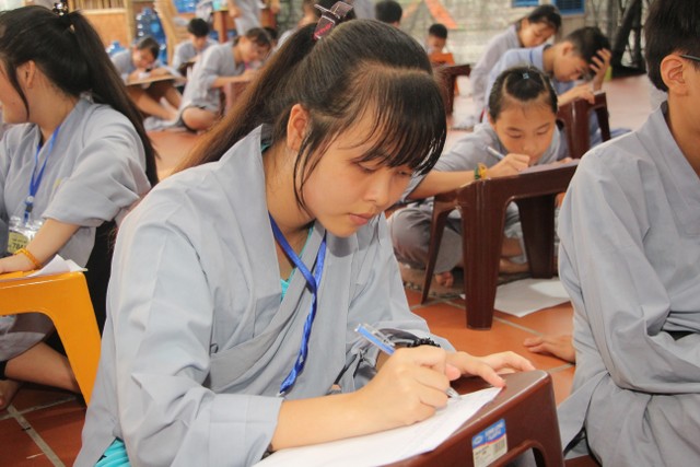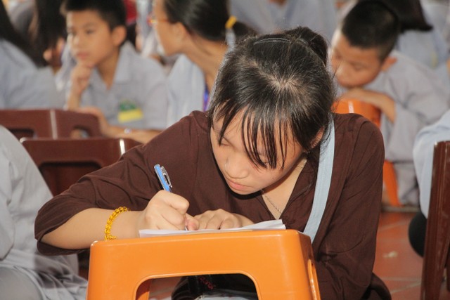 Trong giờ công phu sáng, sau thời khóa niệm Phật, đọc hai mươi lời nhớ ơn, các em đã được nghe chia sẻ của ĐĐ.Thích Nhuận Tâm về phương pháp tu tập chuyển hóa khi các em phải đối mặt với phiền não, lo âu và bất an. Điểm nhấn của ngày cuối cùng chính là những giây phút các em trải lòng mình, viết nhật ký về ba ngày tham dự khóa tu “Nụ thương sen hồng”. Những chia sẻ rất thật, ngây thơ, hồn nhiên của các em làm không khí ngày tu thêm náo nhiệt.