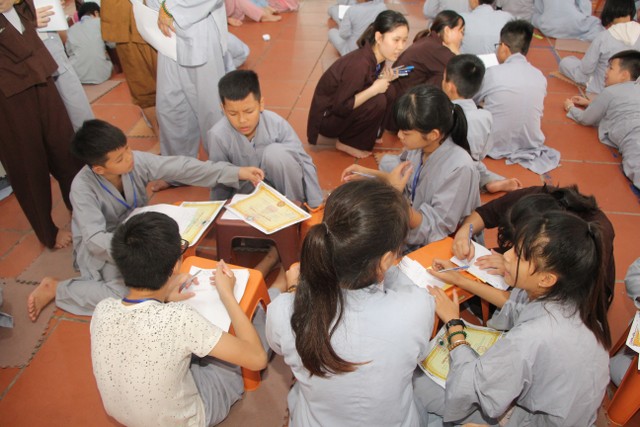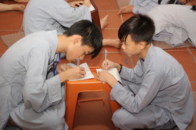 Buổi chiều ngày thứ ba thực sự để lại nhiều cảm xúc đối với các thiện sinh. Các em nhỏ đã được thỏa sức hòa mình với không khí thi đấu đá cầu giữa các chúng, chơi những trò chơi tuy đơn giản nhưng vui và bổ ích. Bên cạnh đó, cuộc thi xé giấy dán tranh thuyết trình diễn ra hết sức sôi động, giúp các em tổng kết lại những gì đã học được và có thêm cái nhìn mới về ngôi chùa Từ Xuyên thân yêu.