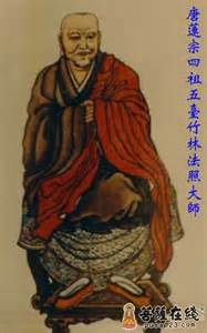 蓮宗的第四祖是法照大師 (西元747821),身世事蹟不詳。他是唐代宗皇帝的國師。因仰慕慧遠大師的芳蹤,由東吳到廬山,結西方道場,專修禪觀,有一天入定往極樂世界,見承遠大師侍於佛側而大悟。永泰年中(西元765766),登南嶽衡山,師從承遠大師受淨土法門,後始終修念佛法門。住止衡州雲峰寺,早先專修慈忍戒定,因而在大曆二年(西元767年)曾內見五臺山聖境,如見五色祥雲,樓閣台寺宇,還見文殊菩薩與諸眾講經說法。遂萌生朝拜五台的念頭,然緣甚多,未能成行。