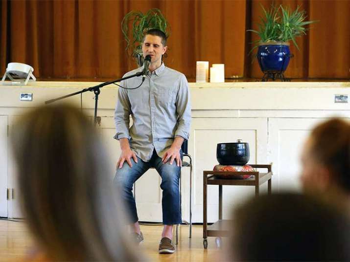 Thomas McConkie leads a meditation session in Salt Lake City, Utah. From religionnews.com