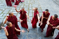 Nuns practicing their debating skills, Dolma Ling nunnery and Institute, India, 2013.