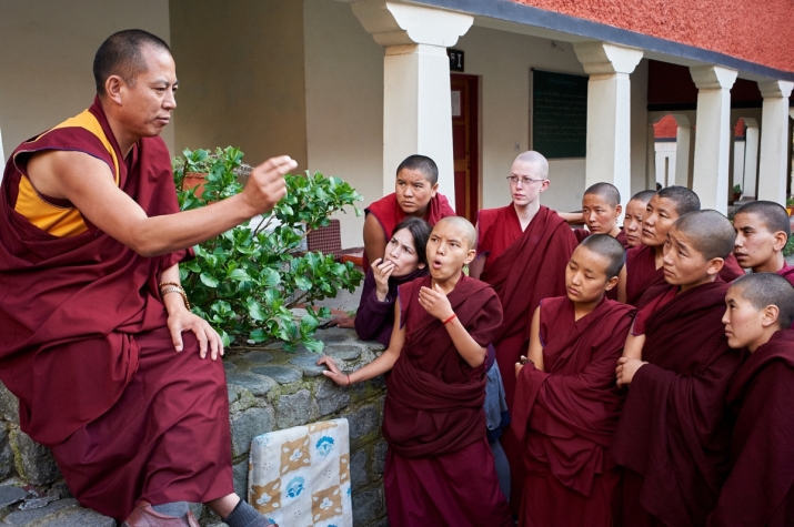 Monks are willing to teach the nuns, Dolma Ling nunnery and Institute, India, 2013.