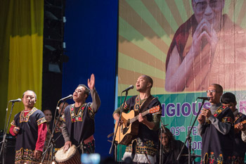| Musicians performing traditional songs at the conclusion an interfaith event in Shillong, Meghalaya, India on February 5, 2014. Photo/Tenzin Choejor/OHHDL