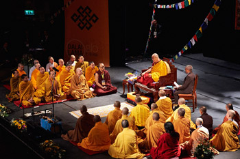 | His Holiness the Dalai Lama speaking at the Chateau Neuf Theatre in Oslo, Norway on May 8, 2014. Photo/Oliver Adam