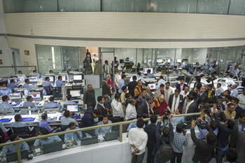 His Holiness the Dalai Lama visiting offices at the new Shree Ramkrishna Exports building in Surat, Gujarat, India on January 1, 2015. Photo/Tenzin Choejor/OHHDL