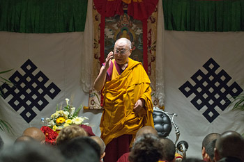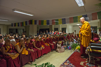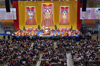 Later in the afternoon His Holiness returned to the Modigliani Forum and continued his teachings from Nagarjuna's "Letter to a Friend" and Tsongkhapa's "Praise of Dependent Origination". Tomorrow His Holiness will confer the Avalokiteshvara Empowerment in the morning followed by a public talk in the afternoon.