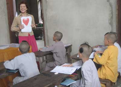 Phương pháp ''học bằng trò chơi'' của cô A.Eagleton luôn đem lại sự đam mê và thích thú với các em nhỏ ở chùa.