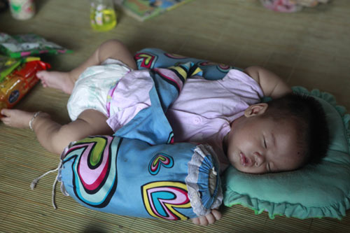 Giấc ngủ hồn nhiên Đứa trẻ bị tật bẩm sinh được nhà chùa đưa đi phẫu thuật