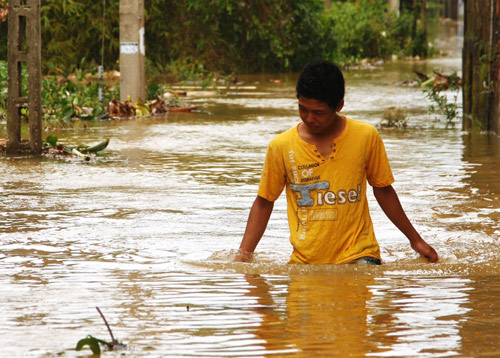 Trong khi đó, sau bão, mưa lớn cùng thủy triều lên khiến nhiều nơi ở thị xã Hương Thủy (Thừa Thiên - Huế) ngập nặng, nhiều nơi nước đã tràn vào nhà.