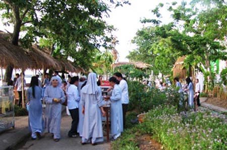 Không gian quê và ẩm thực chay ngay bên bờ sông Hương thật sự là một điểm nhấn của Tuần văn hóa Phật giáo. Phố đi bộ Nguyễn Đình Chiểu mọi ngày bỗng chuyển mình thành một ngôi làng bên bờ sông Hương thơ mộng, với những mái nhà tranh, những vườn cây xum xuê trái. Mỗi chiều, khi gió sông Hương làm dịu đi cái nóng gay gắt thì người Huế lại tìm về "làng", để cùng thưởng thức những món ăn chay truyền thống của chùa cũng như món chay dân gian của xứ Huế.