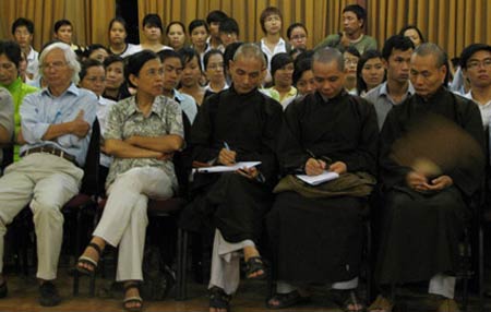 Sự hiện diện của đông đảo nhân sĩ, trí thức Huế bên cạnh các tăng ni, Phật tử trong các buổi thuyết trình, đến để nghe nhau, để trao đổi và chia sẻ, khiến những buổi thuyết trình thật sự là ngày hội của những người trăn trở với Phật giáo dân tộc, với văn hóa dân tộc. Ảnh: KL