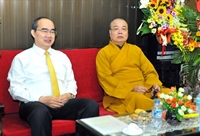 Chủ tịch Nguyễn Thiện Nhân cùng Hòa thượng Thích Thanh Nhiễu,
