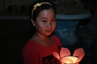 Thời khắc mà các Phật tử mong đợi nhất đã đến khi ngọn hoa đăng đầu tiên được thắp lên. Đó là ánh sáng của Từ Bi và Trí Tuệ. Ánh sáng này sẽ mãi mãi trường tồn với thới gian, bởi đó là mạng mạch của Phật Pháp. Những ánh sáng đó đã được Chư Tăng truyền sang cho các Phật tử có mặt tại buổi lễ, cả một sân nến lung linh huyền ảo dần dần được hiện ra. Cầm ngọn nến trên tay, ánh sáng lan tỏa khắp muôn nơi, chắc hẳn tâm ai cũng đang hướng về thế giới Tây Phương Cực Lạc, nơi mà có Đức Phật A Di Đà đang thuyết pháp, dâng trọn tấm lòng thành kính nhất của mình để cúng dàng Đức Phật A Di Đà nhân kỷ niệm ngày khánh đản của Ngài. Nguyện đem câu Phật hiệu đi vào cuộc sống, xóa tan hận thù oan trái đang tràn ngập, ngự trị trong ý nghĩ tới lời nói và hành động.