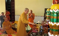HT.Thích Trí Quảng thắp nến trước bàn thờ Phật theo nghi lễ Phật giáo Campuchia