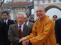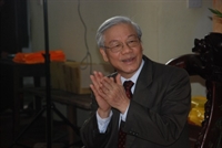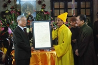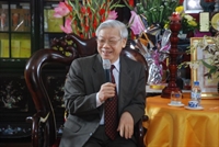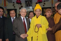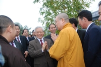 Tổng Bí thư Nguyễn Phú Trọng gửi lời chúc Tết và tặng hoa tới Đại lão Hòa thượng Thích Phổ Tuệ