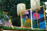 | Phật tử ngồi trên xe hoa cầu nguyện. | |