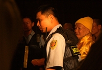 phật tử vẫn đang xếp hàng dài, đứng chật kín ở cổng.
