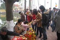nhau thành hàng dài. Người đi lễ đền, chùa có đủ cả từ các cụ ông, cụ