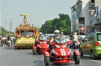 Xe hoa được cung rước trên các tuyến đường Nghi Tàm, Âu Cơ, Lạc Long Quân, đường Thuỵ Khuê, đường Thanh Niên, Toàn thể đạo tràng Phật tử với tâm thành dâng lên Đức Từ Phụ bằng tất cả niềm tôn kính vô biên, bằng tất cả sự thiết tha biết ơn vô hạn, nguyện cầu cho trời người an lạc thế giới hoà bình, tất cả gần xa thấm nhuần Phật đạo. PTVN xin giới thiệu chùm ảnh