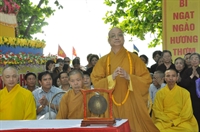 Xe hoa được cung rước trên các tuyến đường Nghi Tàm, Âu Cơ, Lạc Long Quân, đường Thuỵ Khuê, đường Thanh Niên, Toàn thể đạo tràng Phật tử với tâm thành dâng lên Đức Từ Phụ bằng tất cả niềm tôn kính vô biên, bằng tất cả sự thiết tha biết ơn vô hạn, nguyện cầu cho trời người an lạc thế giới hoà bình, tất cả gần xa thấm nhuần Phật đạo. PTVN xin giới thiệu chùm ảnh HT Thích Thanh Nhã - Uỷ viên HĐTS GHPGVN - PHó BTS Thành hội Phật giáo HÀ Nội - Chánh Ban đại diện Phật giáo quận Tây Hồ - Trưởng Ban tổ chức đọc lời khai mạc