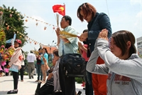 Nhiều người dân, Phật tử thắp hương, cúng bái tại tượng đài Bồ tát Thích Quảng Đức (Q.3, TP.HCM) - Ảnh: Trí Quang