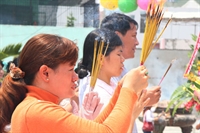 Người dân cúng lễ tại Thiền viện Quảng Đức (Nam Kỳ Khởi Nghĩa, Q.3, TP.HCM) - Ảnh: Trí Quang