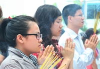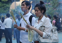 Nhiều bạn trẻ có mặt từ sớm để thắp hương bái Phật cầu bình an - Ảnh: Trí Quang