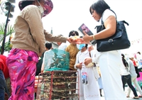 Rất đông người đi lễ mua chim phóng sinh tại chùa Vĩnh Nghiêm (Q.3, TP.HCM) - Ảnh: Trí Quang