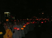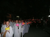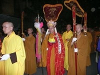 trang nghiêm, đèn hoa sen trên tay, tề chỉnh hàng lối, niệm Phật.