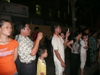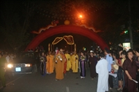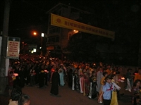 Đúng 20h 30, đoàn rước khởi hành từ chùa Nam Hải với đội hình: