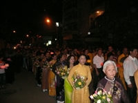- Tiếp theo là đoàn nữ Phật tử hơn 100 người rước hoa cúng Phật, nghi