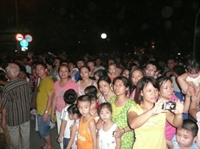 Đoàn rước tới hồ, diễu hành trọn 1 vòng tới sân khấu chính, người đông
