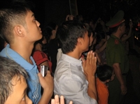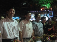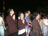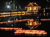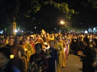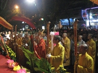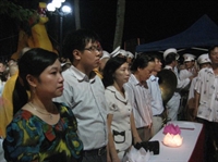 Nghi lễ thả hoa đăng đêm hội được cử hành trọng thể: Quốc ca, đạo ca, trầm hùng vang lên trong đêm.