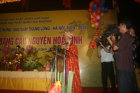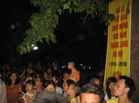 hàng nghìn Phật tử chắp tay hướng về mô hình ngôi chùa của Thăng Long