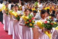 * 8 giờ 40: Các em Phật tử trẻ Nghệ An dâng hoa cúng dường Đại hội trong không gian lắng đọng và trang nghiêm.