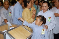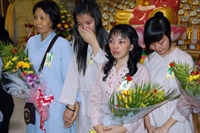 Phật tử dâng hoa cúng dường chư tôn đức