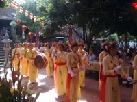 Đông đảo quan khách, Phật tử địa phương đã về dự buổi lễ. Đội văn nghệ,