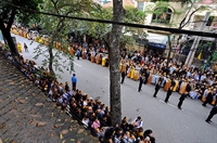 Đoàn nghi lễ cung nghinh kim quan rời chùa Quán Sứ