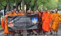 Độ tại Bangkok để phản đối vụ đánh bom Bồ Đề Đạo Tràng, trung tâm là Đại