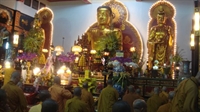 lễ niêm hương bạch Phật, toàn bộ chư Tăng lần lượt đối trước HT đường