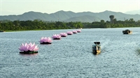đóa sen hồng xuống lòng sông Hương chuẩn bị cho buổi lễ tối.