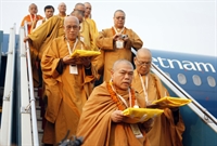 Hàng ngàn tăng ni Phật tử đứng chật cổng VIP sân bay quốc tế Nội Bài